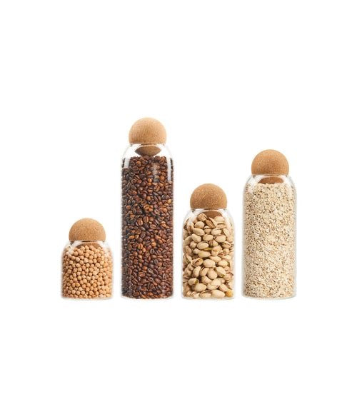 Crystal-clear glass body paired with an elegant natural cork ball lid, creating a stylish and airtight seal that keeps your ingredients fresh for longer.